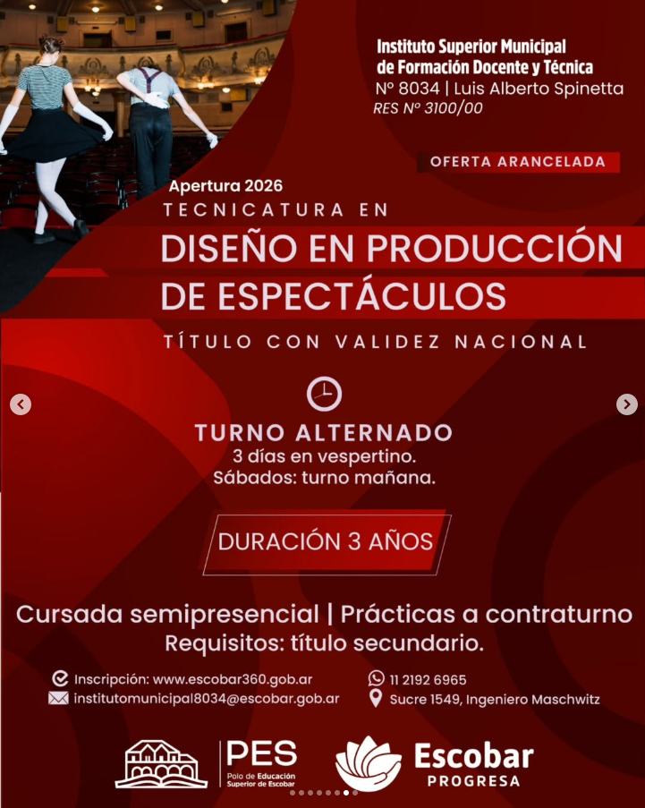 La Tecnicatura en diseño de producción de espectáculos tiene una duración de 3 años.